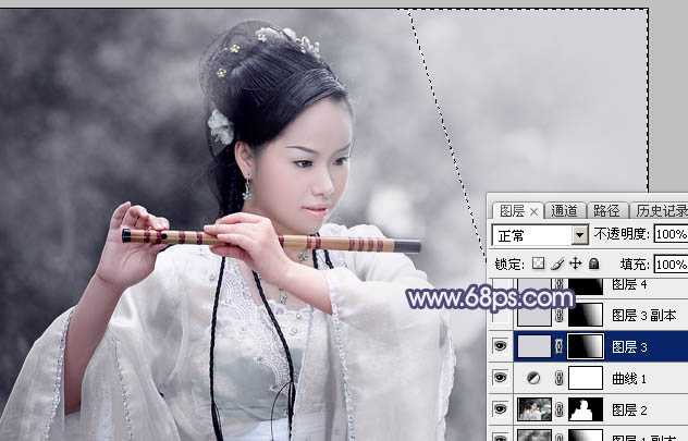 夏季拍出的照片都是清爽的绿色,让人看了很平淡。今天小编就为大家带来将清爽的古装人物图片打造出梦幻的古典淡蓝色,喜欢的朋友可以一起来学习。我们在处理这类图片的时候尽量用唯美的风格来表现,把背景模糊处理、主色浓淡结合、画面多增加烟雾效果即可。