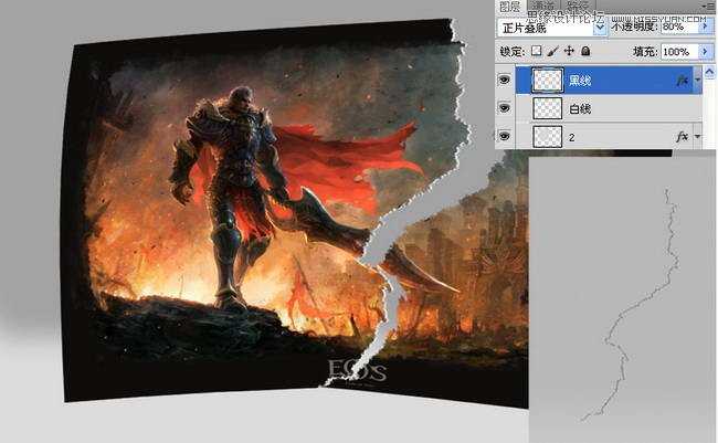 根据上述步骤,再做几个其他形式的撕裂纸张,加入调节气氛的小火苗和底部投影,大功告成。