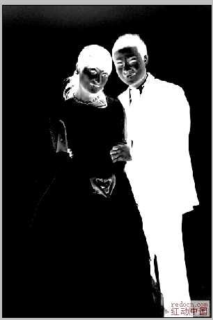 4、按住ctrl不放,点复制的通道,也就是载入选区(是不是很方便呢?呵呵~通道中,白色才是我们要操作的,也是我的习惯,不反相也可以,当然后面也少不了这一步,如果不反相载入选取,也可以将选取反选。< P>