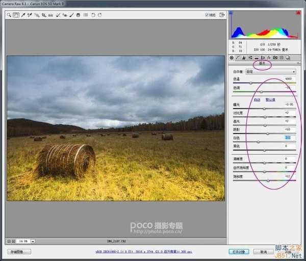 (9)回到基础面板,针对色温、色相、对比度和饱和度等再做精细调整。