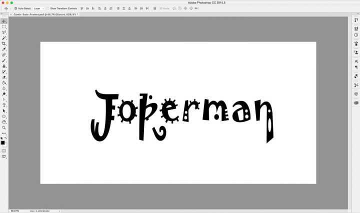 在PS中选择Jokerman,然后输入你需要设计的品牌名称。大概确认一下整个Logo的结构情况。在这里我们可以看到J的横笔、K末梢的卷曲和整个字干不规律的粗细变化都是设计时可以借鉴的元素。