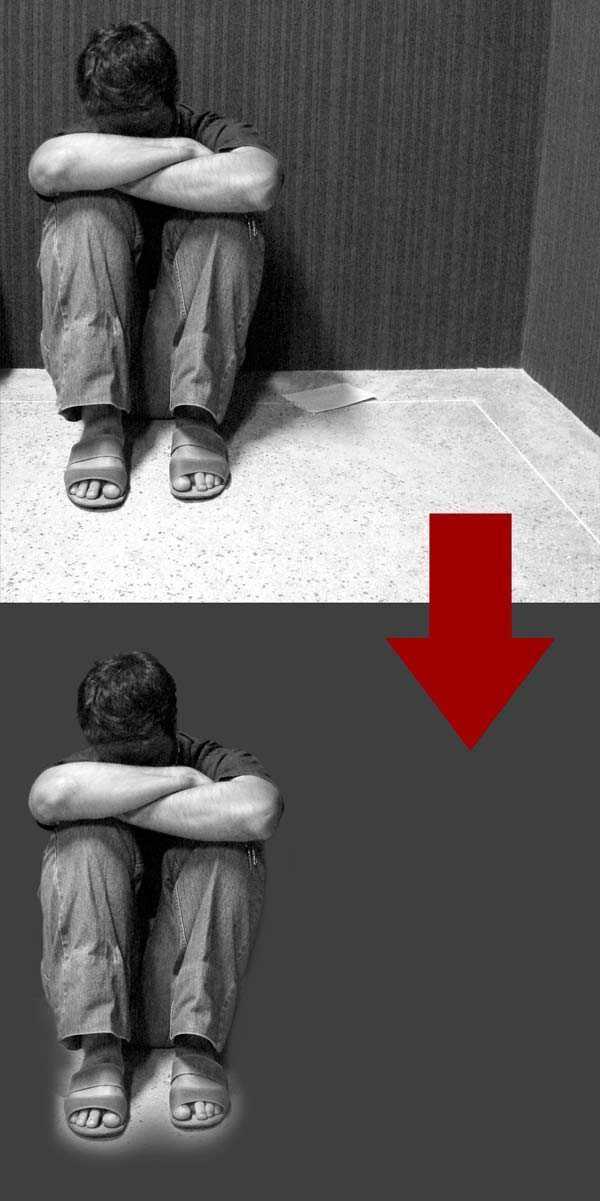 在男孩的双脚附近你可以保留一些细节,比如他两腿间的阴影,多余的部分用一个软笔刷(B)擦除。