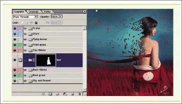 你要有心理准备,因为你可能会面对一堆的图层。我会给每个关键素材建立一个组:人物、草、天空等等。记住,你也可以针对组建立蒙版。