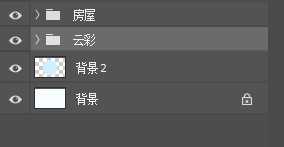 9、因为图层比较多,所以分别将房屋、太阳云彩编组,方便编辑。