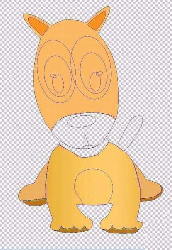 1、我们先构思一下,一只狗狗在身体结构上分为耳朵、脑袋、眼晴、鼻子、嘴巴、脖子、两只前爪,两只后爪、尾巴、等这样的一些元素。我们选择钢笔工具把这些不同色块的部分一一用路径呈现出来,而对于路径重叠的地方,我们也要记得哪个子路径在上层,哪个子路径在下层。
