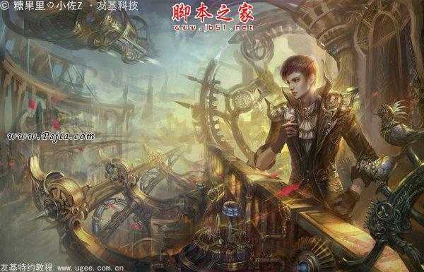 这是一个幻想的世界,金色的阳光肆意地洒下,笼罩着整个日光城。他来到阳台,凝视着眼前的一切,重建的世界潜存着些许忧虑……有一丝慨叹,有一丝祈愿。画面中时间的圆轮、手里的酒杯、两只改造过的鸽子……我还加入了大量幻想机械的元素,比如锁链和齿轮,寓意着追求的自由始终被束缚。