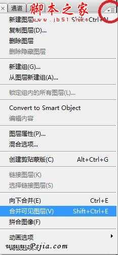 11.整合图层 使用快捷键【ctrl+shift+E】合并所有图层,或者点击图层右上角的倒三角符号按钮选择【合并可见图层】。