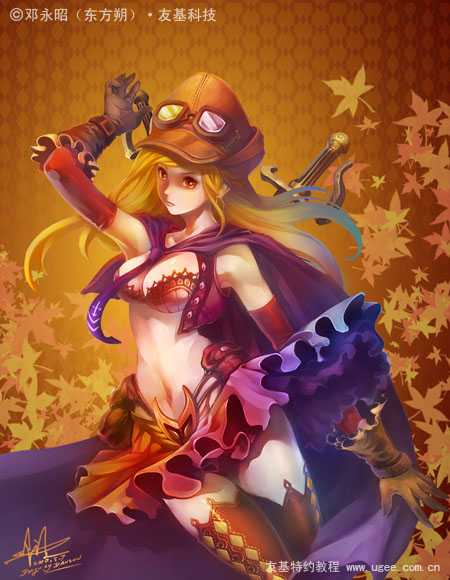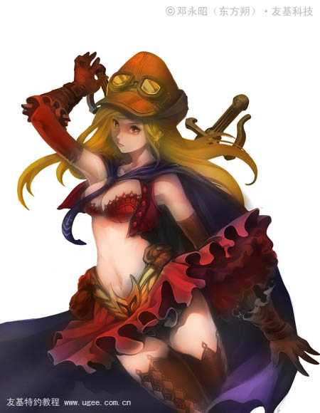 26、在裙摆的边缘加上一点环境色做辅助,让裙子和披风的色调更加融洽。