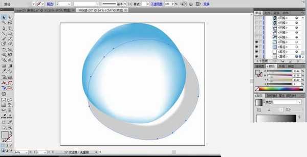 1、使用钢笔画出第一个不规则圆形的路径轮廓,我们用天蓝色填充这个不规则圆形。