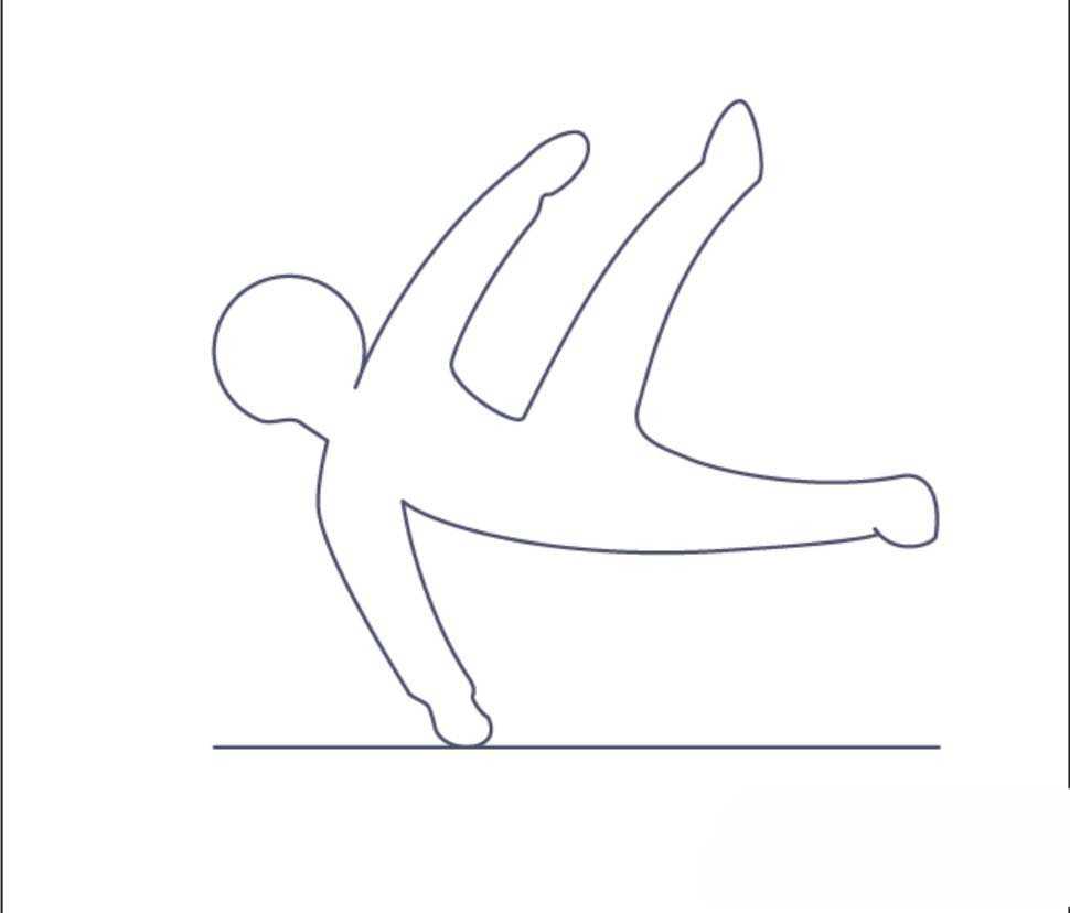 5、下面,我们再来画一个体操运动的图标,先画出运动员翻越单杠的基本形状,再复制一下作成阴影,把阴影路径向下向右移动一下,把单杠做成圆角的矩形。