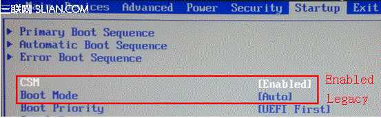 如出现CSM选项为灰色不可选的时候,需要做如下操作。
